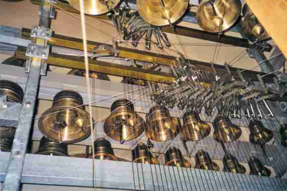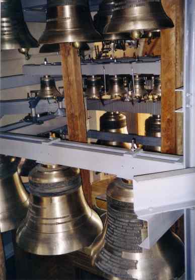 Het nieuwe carillon bestaat uit een klokkenreeks met 51 klokken en met de tonen Bes0-C1-D1 chromatisch t/m D5. Het totaal gewicht van deze klokken bedraagt ca. 15200 kg. De klokken zijn opgehangen in een stalen frame. De klepels bestaan uit rvs stelen met mangaanbronzen klepels. Er is gebruik gemaakt van gerichte tuimelaars. Voor deze toren is een speciaal klavier ontworpen met een klassiek uiterlijk, uitgevoerd in eiken. De maatvoering is volgens de Noordeuropeesche standaard met een aantal aanpassingen naar wens van de beiaardier Jo Haazen.